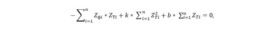 Предполагаем, что между ZT и Zф существует линейная зависимость, выражающаяся линейной теоретической функции вида у = k*x+b. Тогда уравнение примет вид