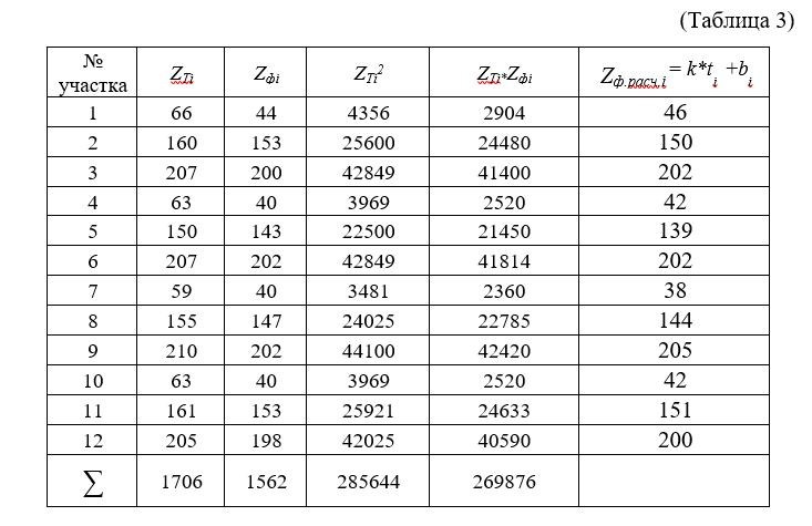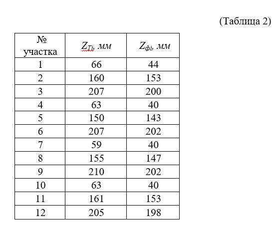 Вычислим для исходных значений ZTi, расчетные значения Zф.расч.i =k*ZTi+b, мм по градуировочной зависимости. Результаты внесем в таблицу 3.