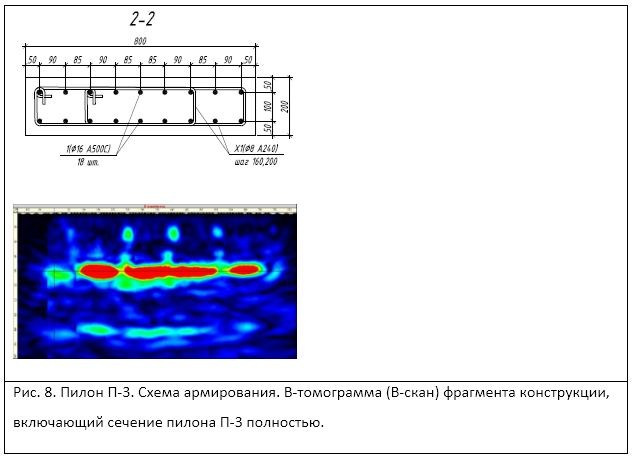 Также, можно отметить, что нарушения внутренней структуры бетона (полости, каверны, инородные включения и т. д.) на участках обследования с линейными размерами более 20 мм не выявляются.